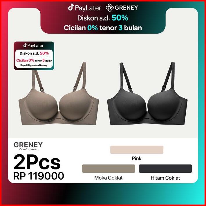 Greney-gbras- 2pcs Bra One Piece Warna Kombinasi Penuh Ringan Bh Wanita Beha Pakaian Dalam Remaja Basic Tanpa Kawat Cewe