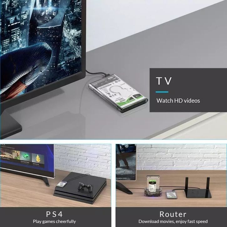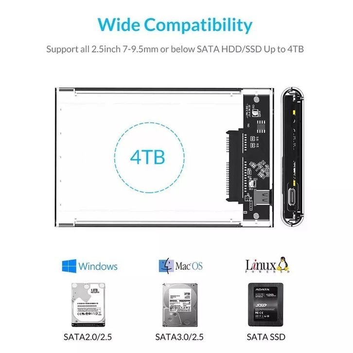 Case Hardisk External Black and White Transparent HDD SSD Enclosure USB 3.0 External Case 2.5 Inch