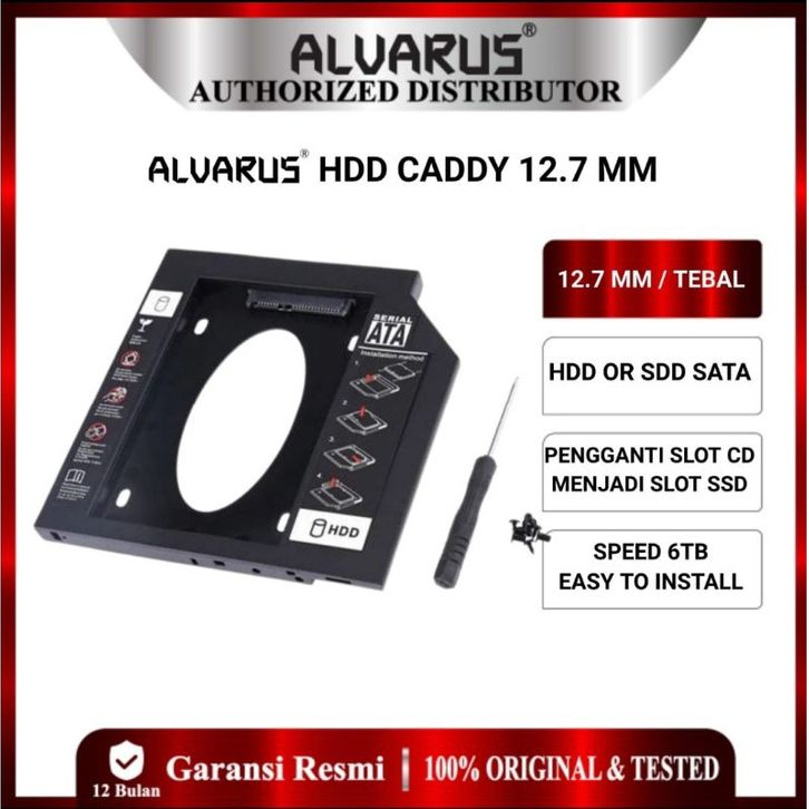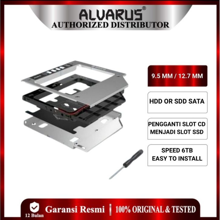 ALVARUS SSD HDD CADDY SLIM TIPIS TEBAL 9.5mm 12.7mm SATA HARDDISK DVD CD ROOM