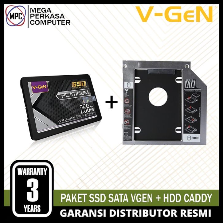 Paket SSD V-GeN SATA 3 2.5" Inch Resmi + HDD Caddy