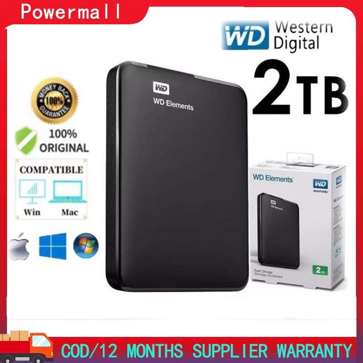 Hardisk Eksternal WD 2TB External Hard Drive Disk USB 3.0 Portable HDD Harddisk for Laptop Notebook
