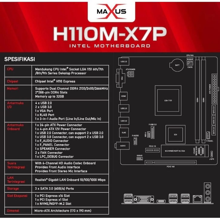 Motherboard MAXUS H110 DDR4 LGA 1151 NVME Slot