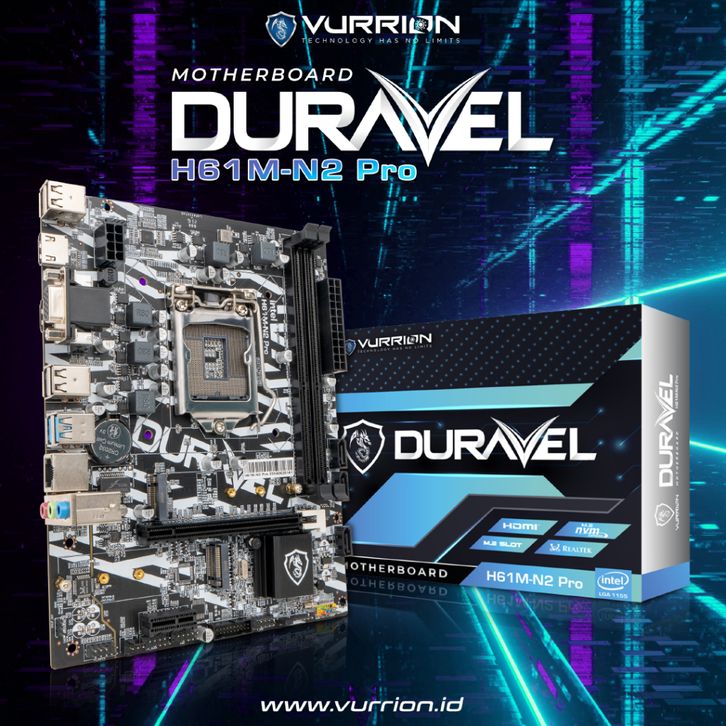 Mainboard H61M-N2 PRO Duravel Vurrion Intel LGA 1155 - Mobo H61 Gen 2 Sandy Bridge / 3 Ivy Bridge