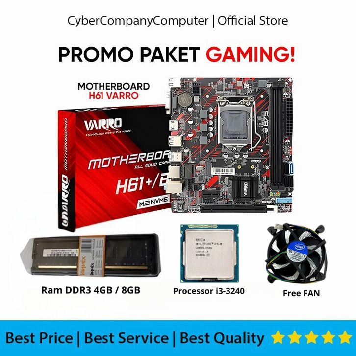 Paket Motherboard Core i3-3240 - Mainboard H61+ / B75 Varro Rev 3 Socket 1155 Support NVME Sata 3.0