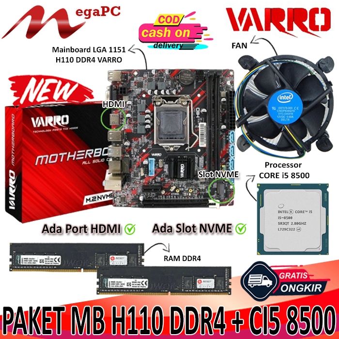 Paketan Mainboard 1151 H110 DDR4 + CORE I5 8400 / 8 + FAN + RAM