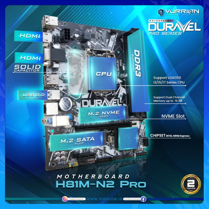 Motherboard H81M-N2 PRO Duravel Vurrion Intel LGA 1150 - Mobo H81 Gen 4 / 5 MB Chipset Inte B85
