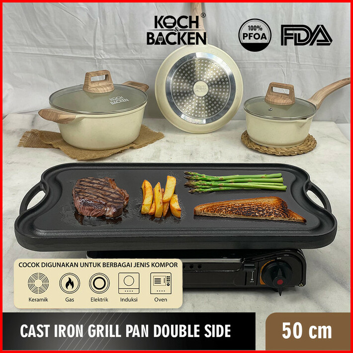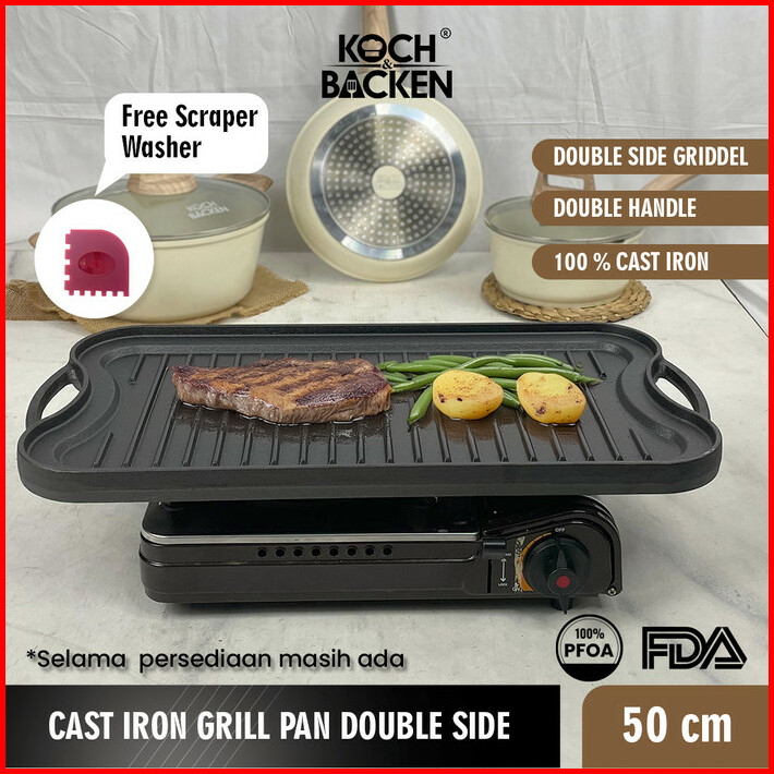 Koch Backen Double Sided Bbq Cast Iron Grill Pan