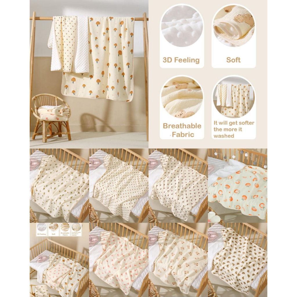 Selimut Dot Bayi Bamboo Bubble 100x110cm / Selimut Bayi Korea Minky Stitches Cotton Dot Muslin Jepang Bamboo / Newborn I