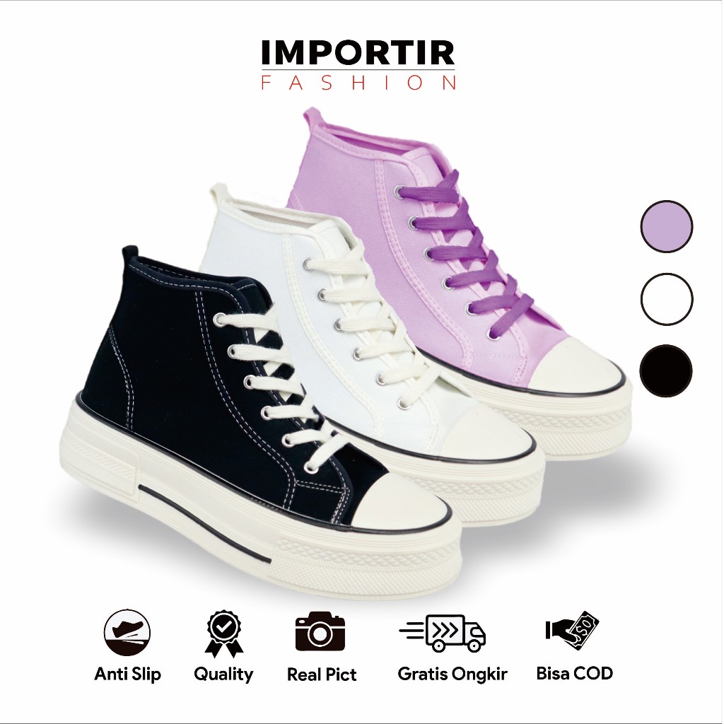 Importir.fashion Aileen 1277 Sepatu Wanita Sneakers Sekolah Kanvas Tebal Kekinian SIZE "37-41"