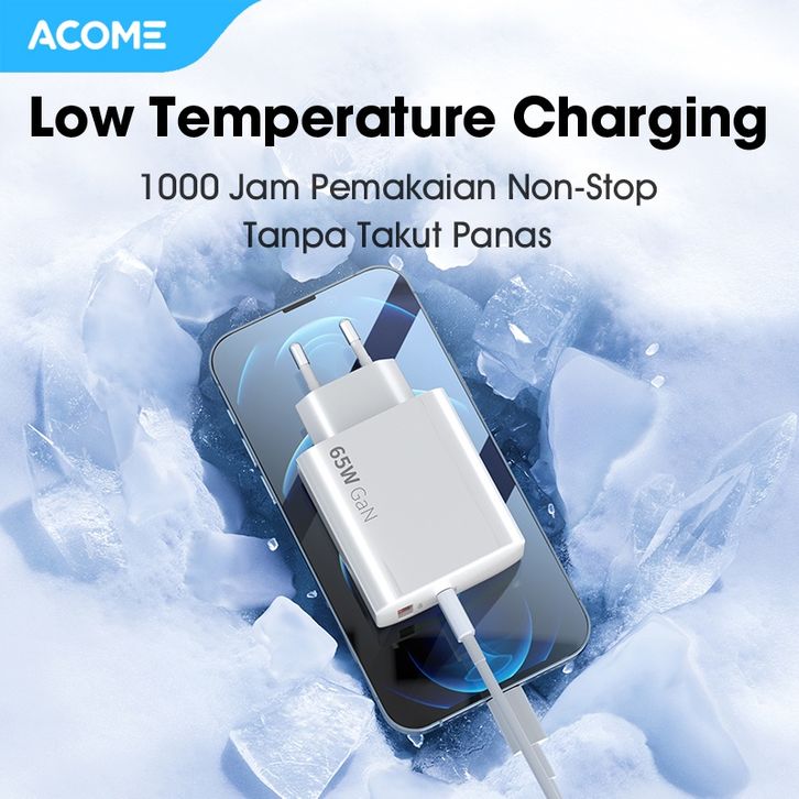ACOME Charger GaN 65W High Power Dual Ports Support All Fast-Charging Technology Garansi Resmi 1 Tahun ACG65