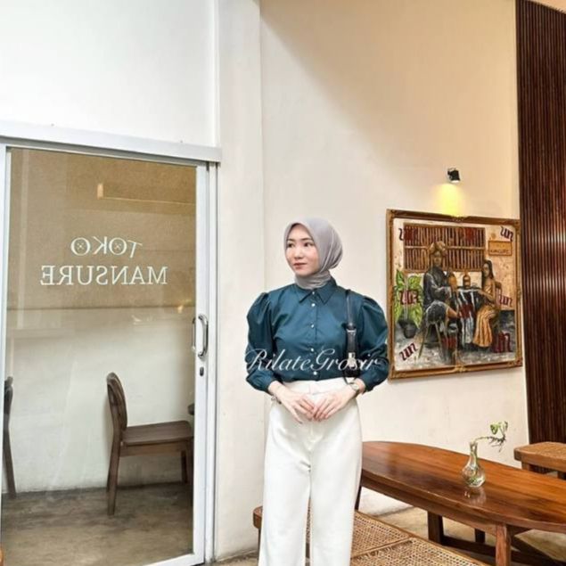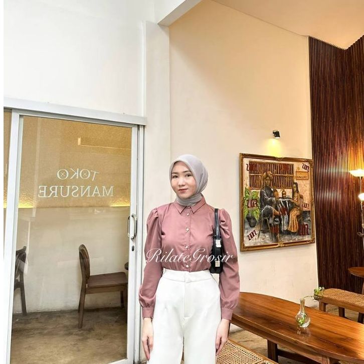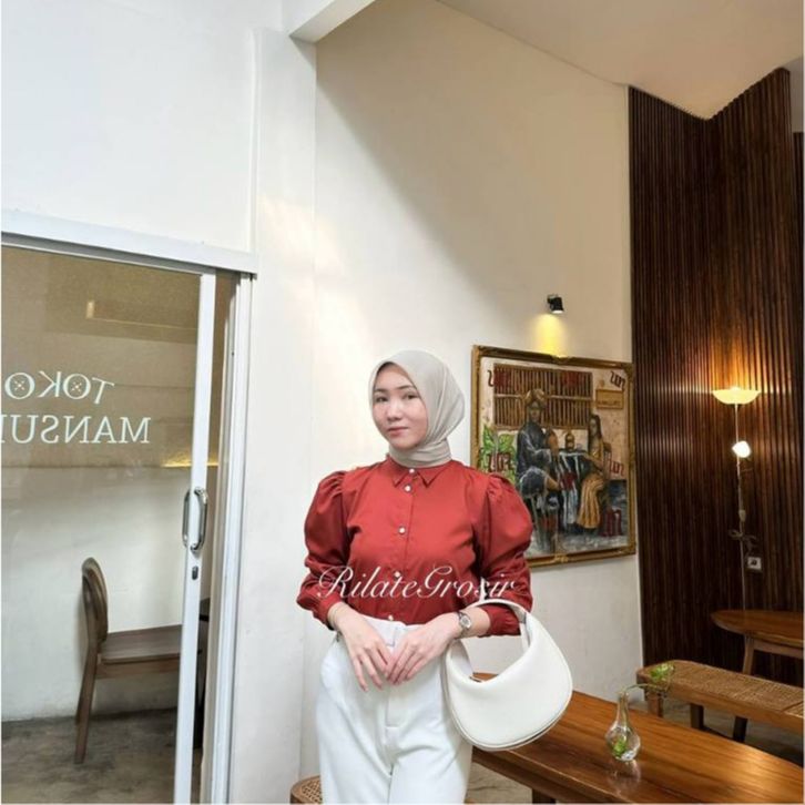 Qyla Kemeja Puffy Blouse Atasan Wanita Panjang Katun Toyobo