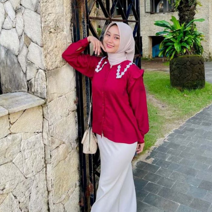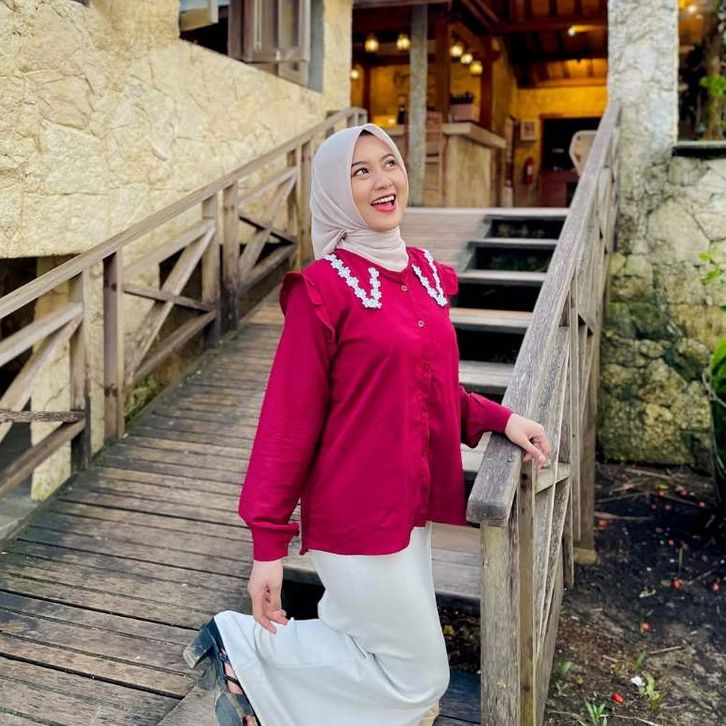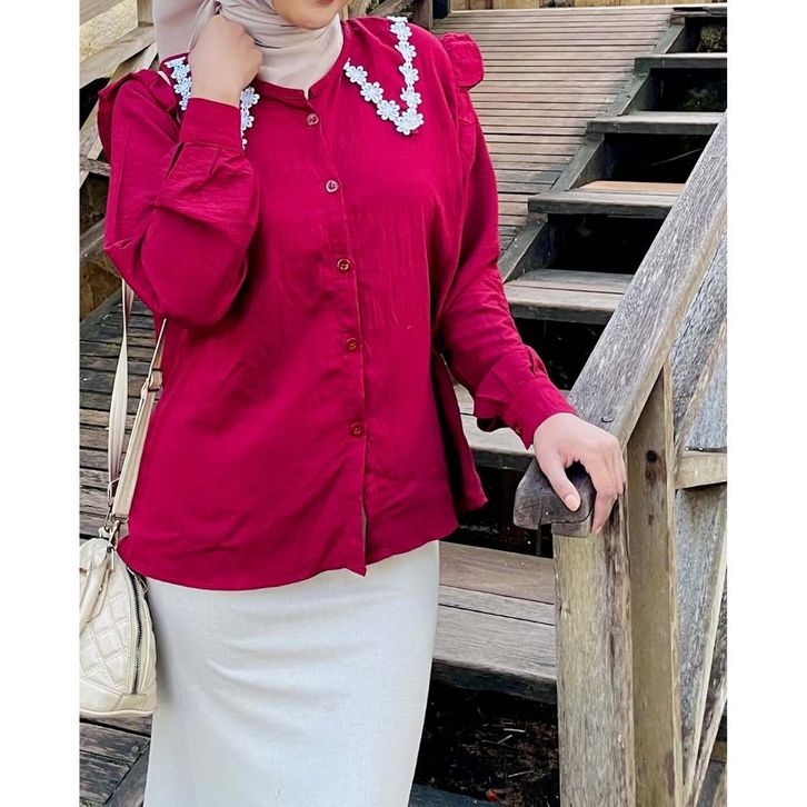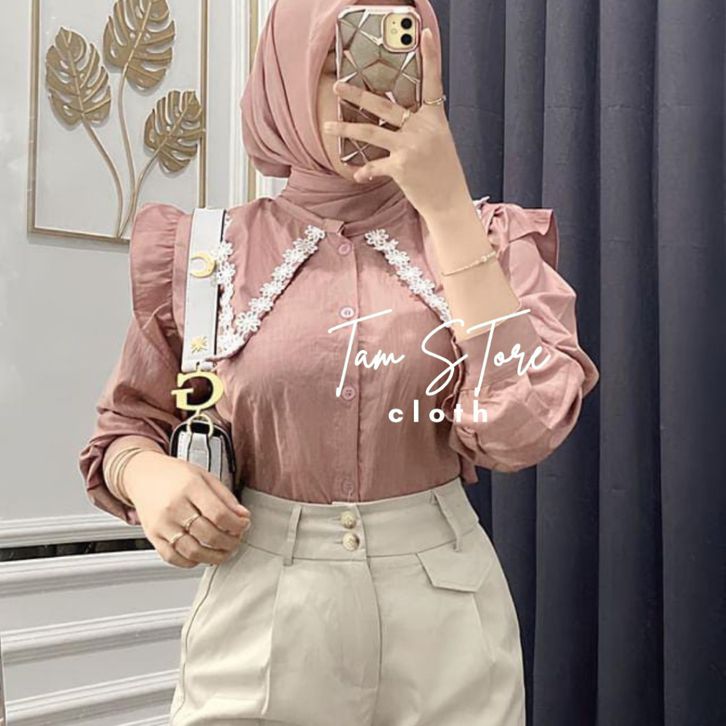 Blouse Linen Wanita Kancing Polo Chic Adem & Stylish Leora
