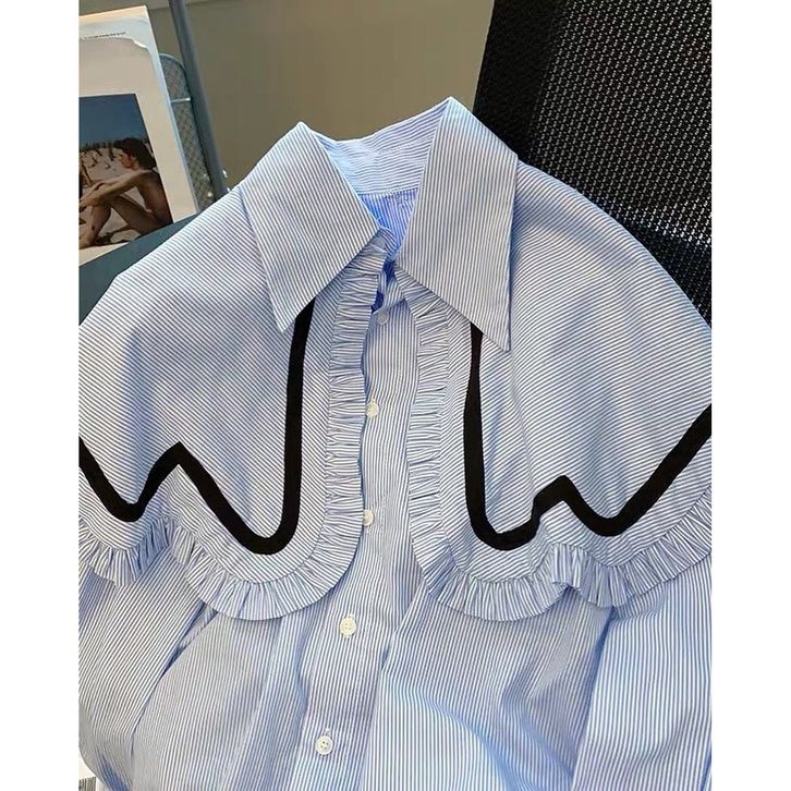 Vallina Outfit - Cameron Top Blouse Bertha Collar Atasan Shirt Kemeja Stripe Salur Cotton Korean Remaja Wanita Premium