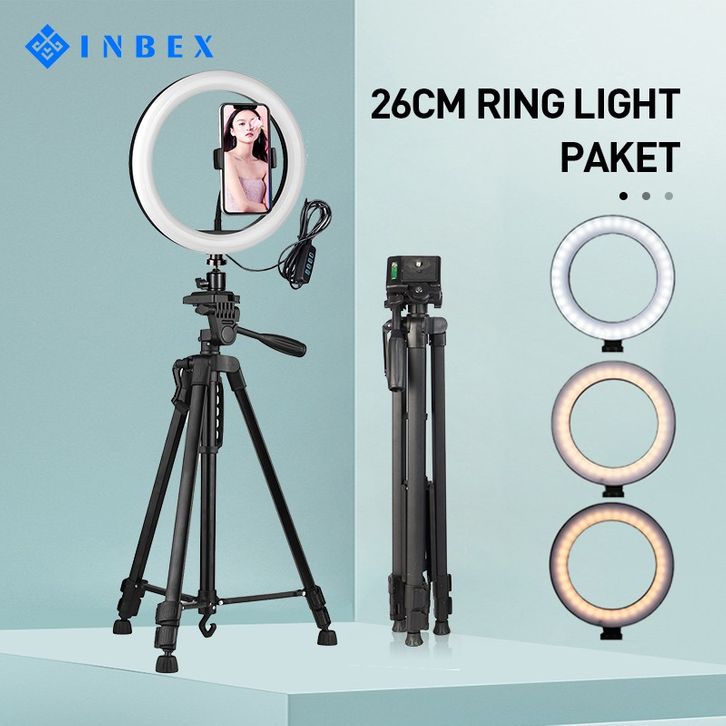 Paket Ring Light 26cm+3366 Tripod+U holder+Carry Bag for HP Gimbal DSLR Kamera Webcam