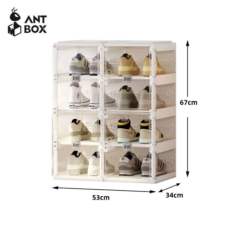 ANTBOX Rak Sepatu Susun Clear 8-20 Pasang Kotak Sepatu Lipat Aesthetic Anti Debu Pintu Magnet