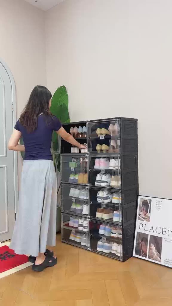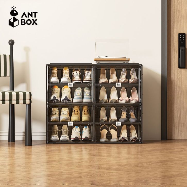 ANTBOX Rak Kabinet Sepatu Warna Hitam Minimalis Kapasitas 16 Sepatu Lemari Sepatu Anti Debu