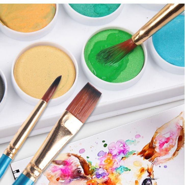 Kuas Lukis Set isi 1 PCS Flat Tip & Runcing Nylon Brush Kuas Cat Minyak Watercolor Acrylic Brush