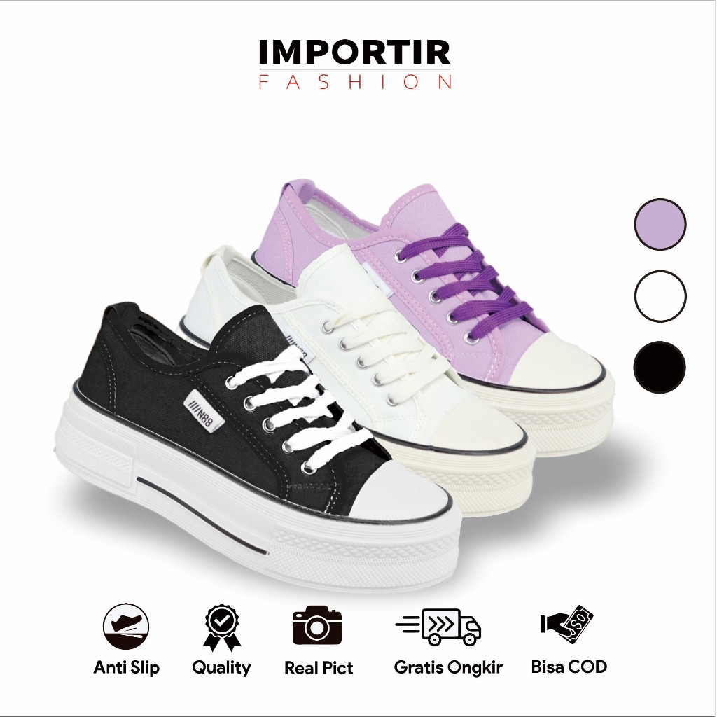 Importir.fashion Carly 1276 Sepatu Wanita Sneakers Sekolah Kanvas Tebal Kekinian SIZE "36-41"