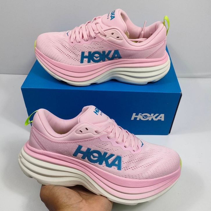 Sepatu Lari Wanita Hoka Bondi 8 Pink Green Size 37-40 Original Premium BNIB Import Free Ongkir Sepatu Running Wanita