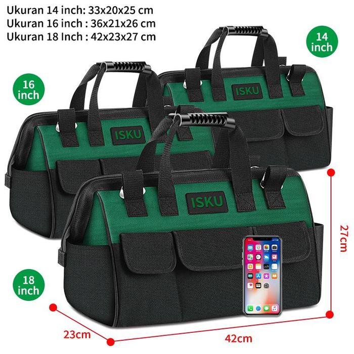 Isku Toolbag 14-16 Inch Kain Oxford Tebal Tas Alat Perkakas Kuat Tas Perkakas Toolkit Toolbox 16 Inch - 18 Inch