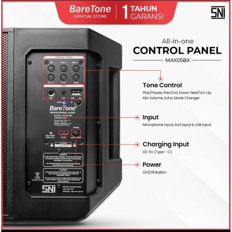 Speaker Aktif Portable BareTone Max05bx Bluetooth Plus 1 Unit Mic Wireless DusenBerg Charger BareTone Speaker Portable M