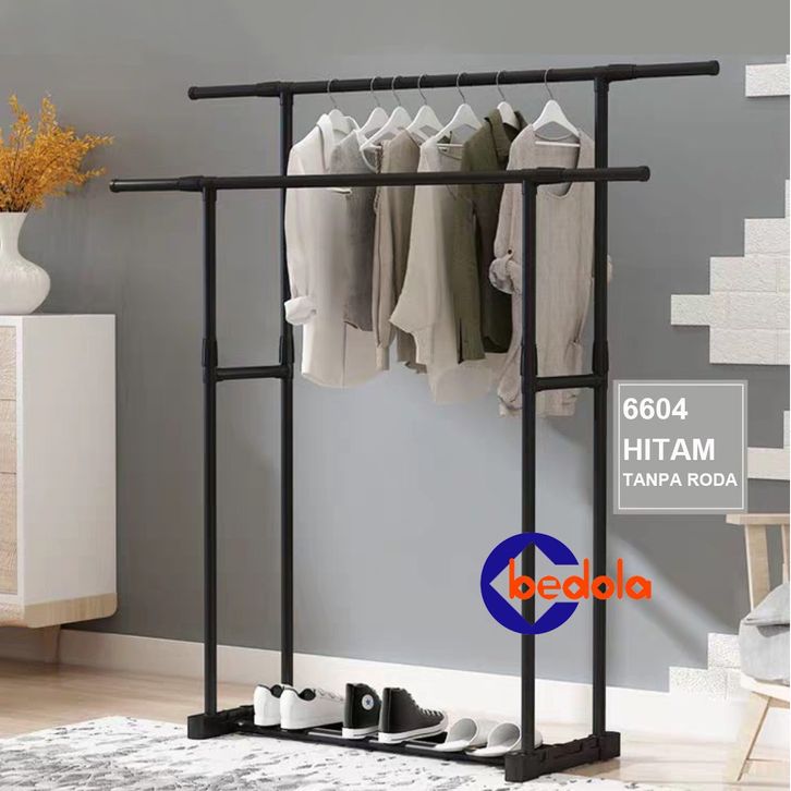 Bedola Stand hanger double rak gantungan pakaian serbaguna rak baju dengan 4 roda 2 sisi