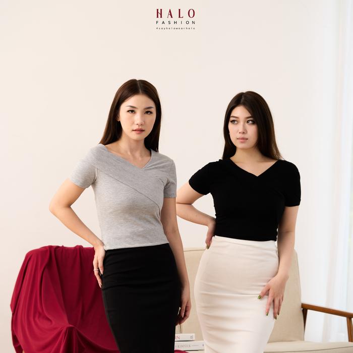 [Halofashion] Jacquelyn One Shouler Crop Top Polos Korean Style Atasan Baju Casual Wanita Pendek - Black, S