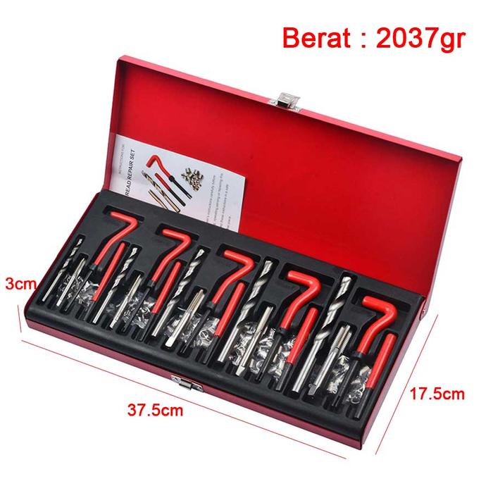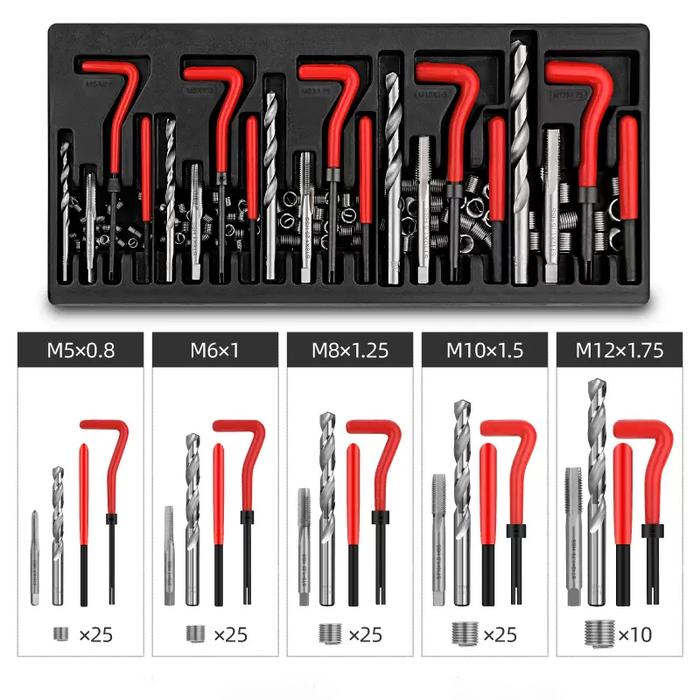 131Pcs Recoil Helicoil M5 M6 M8 M10 M12 Benang Perbaikan Alat Kit Set