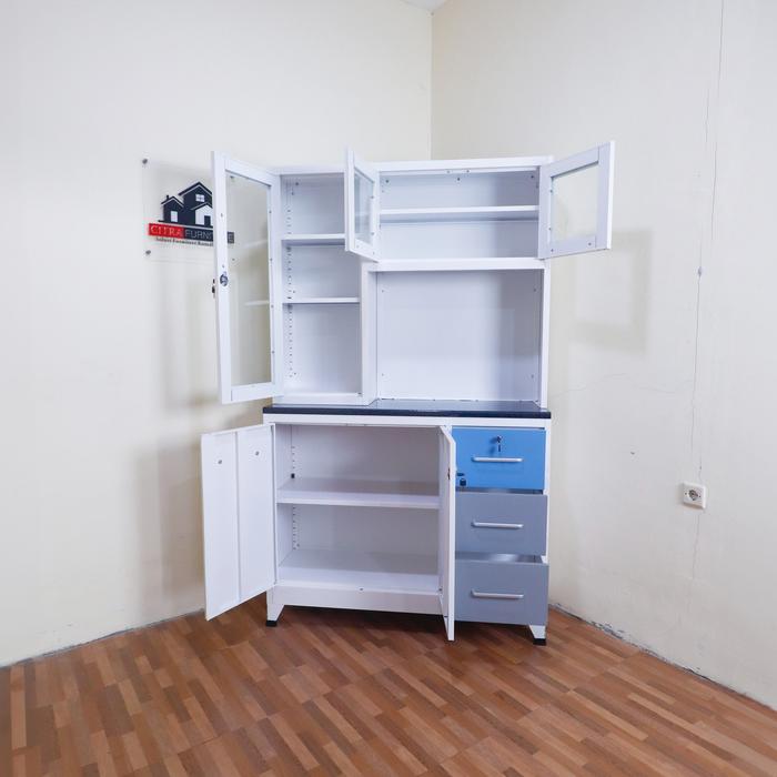 [ Shumo ] Lemari Dapur 3 Pintu Minimalis Besi | Kabinet Rak Piring Besi | Kitchen Set Besi Florida Seri- Dirakit