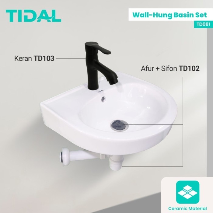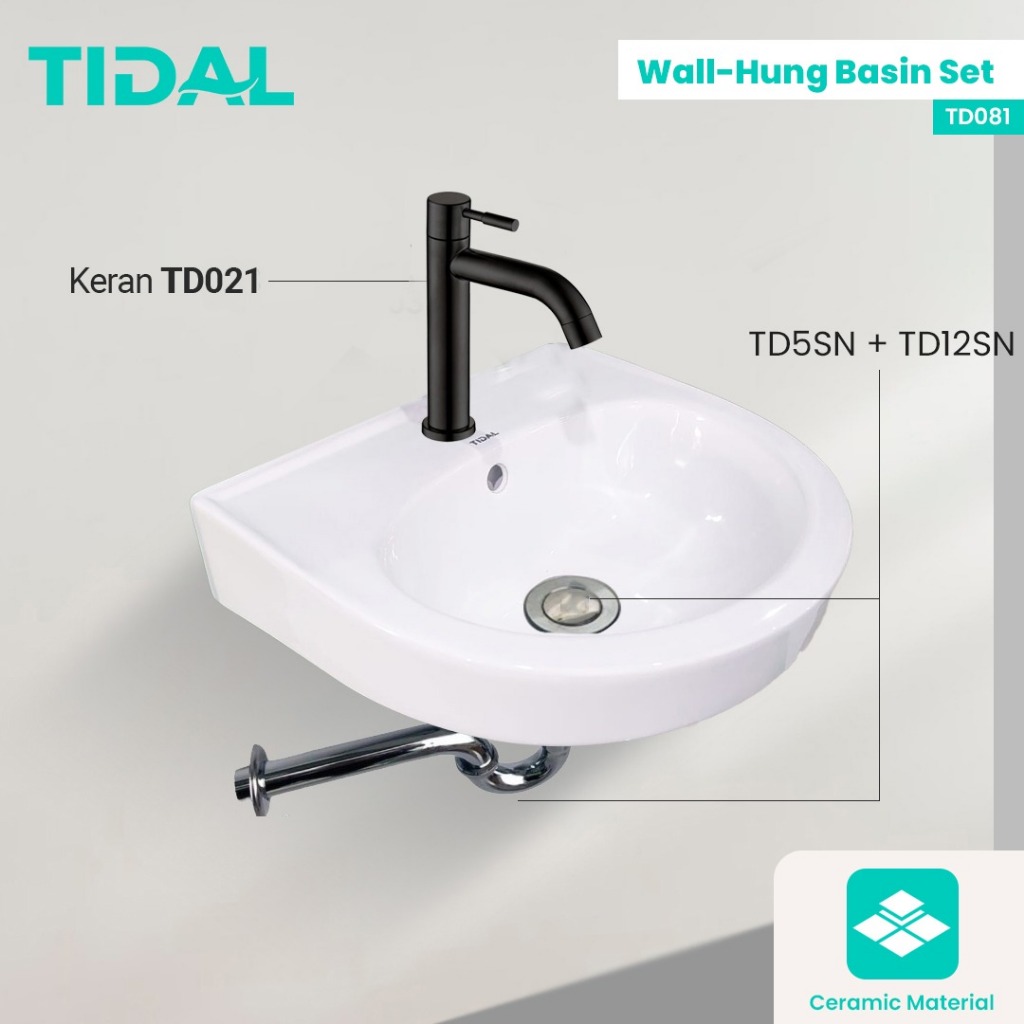 Set Wastafel Keramik Gantung Tembok Tidal TD081 Minimalis