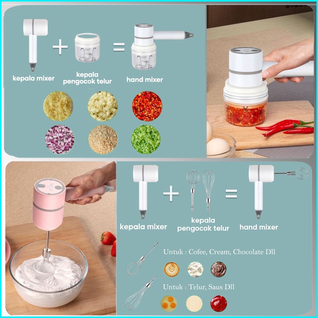 Blender 3 In1 Mixer Hand Mixer Portable Blender Pengocok Telur Elektrik Wireless Serbaguna
