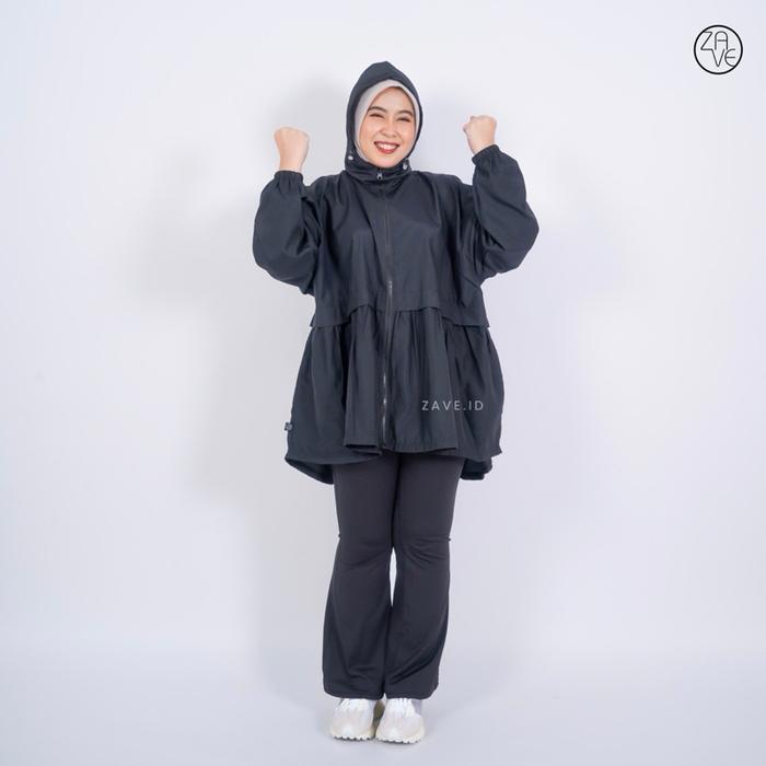 Zave - Alana Rample Jacket Ld140 Nilon Bigsize Windbreaker Jaket Oversize Wanita Olahraga - Navy