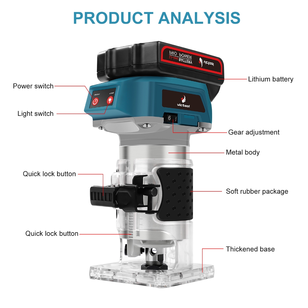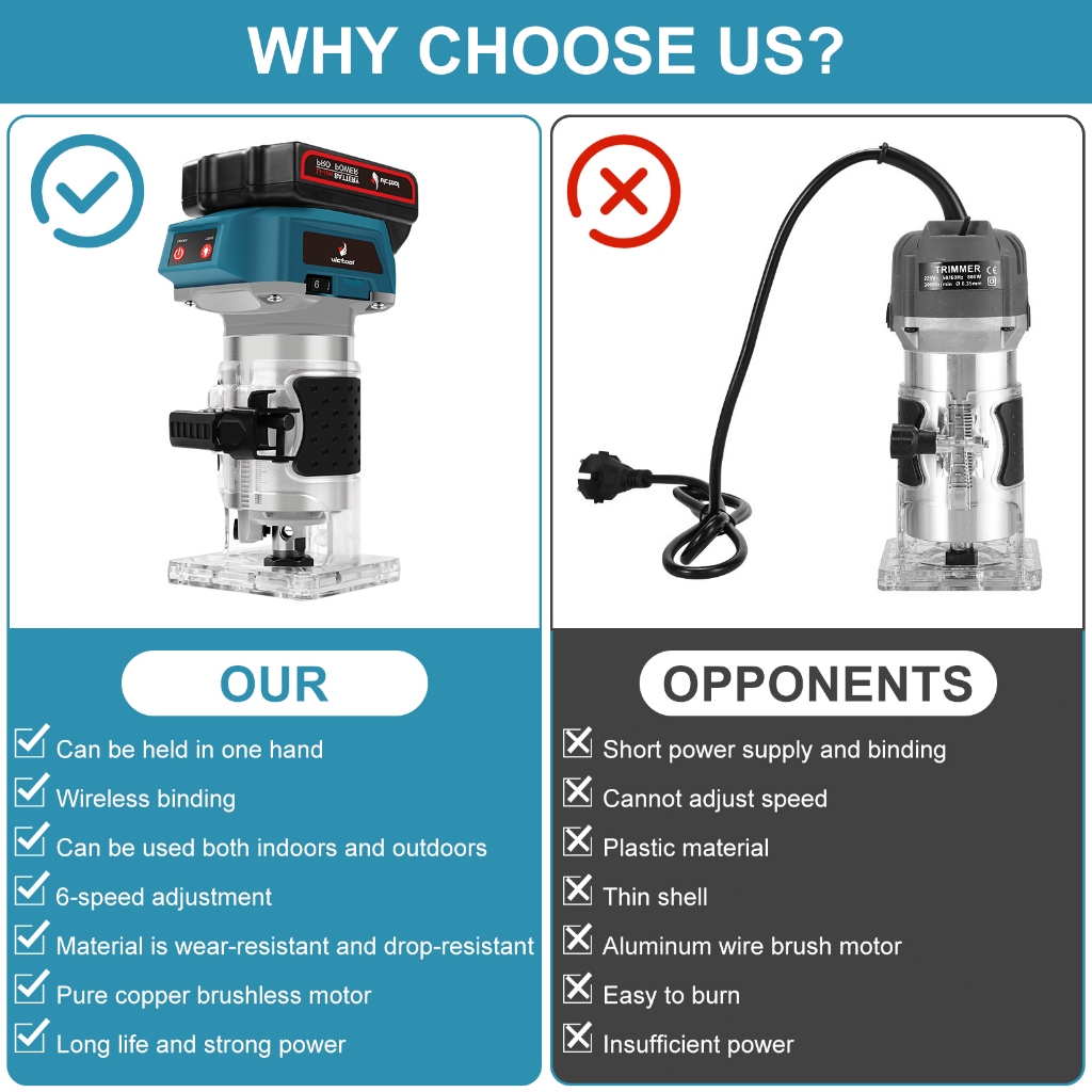 WARMEE mesin profil kayu cordless 30000RPM mesin propil kayu 21V Mesin Router Kayu