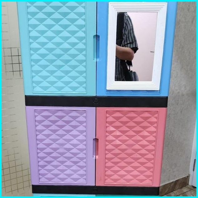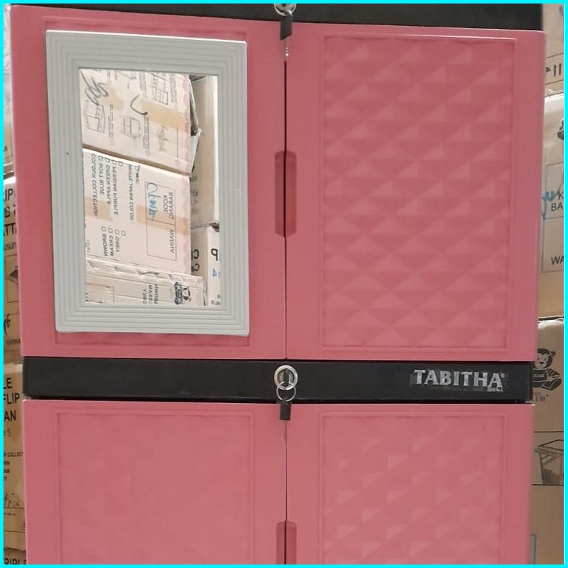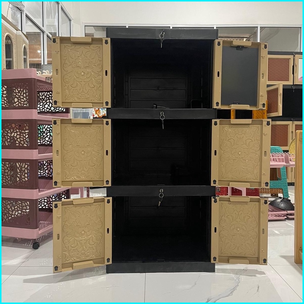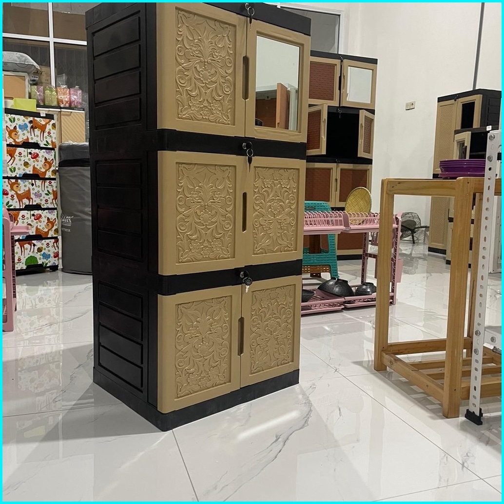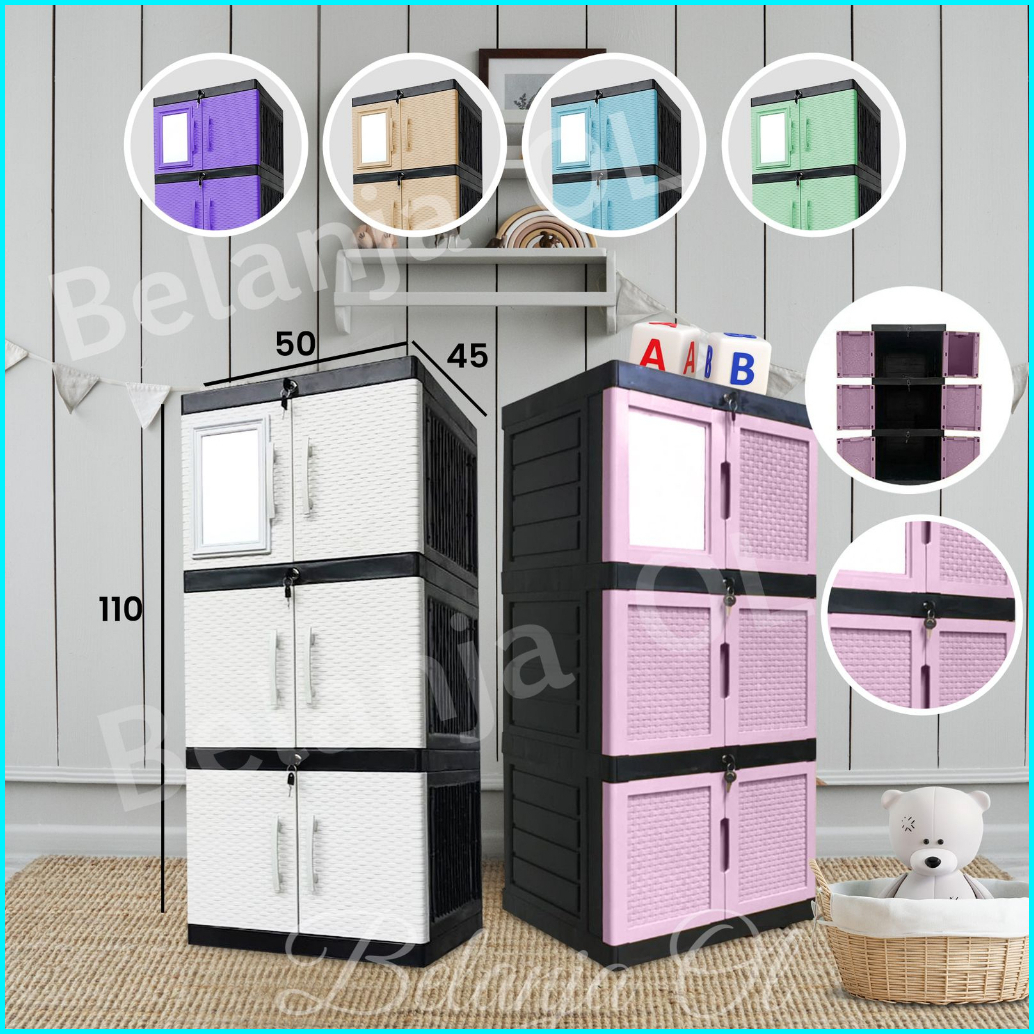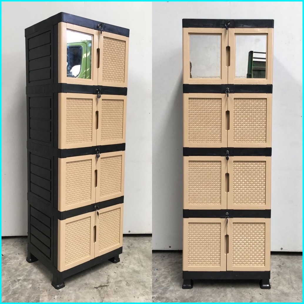 Lemari Plastik Susun 4 Dan Susun 3 Mini Kunci Plus Kaca Rotan