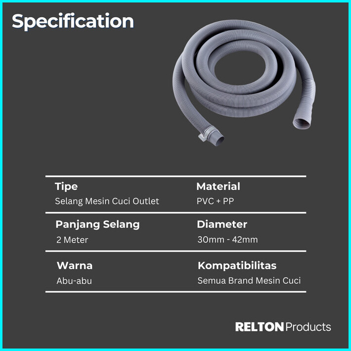 Selang Pembuangan Air Mesin Cuci Outlet Washing Machine Hose 2 3 5 Meter Relton