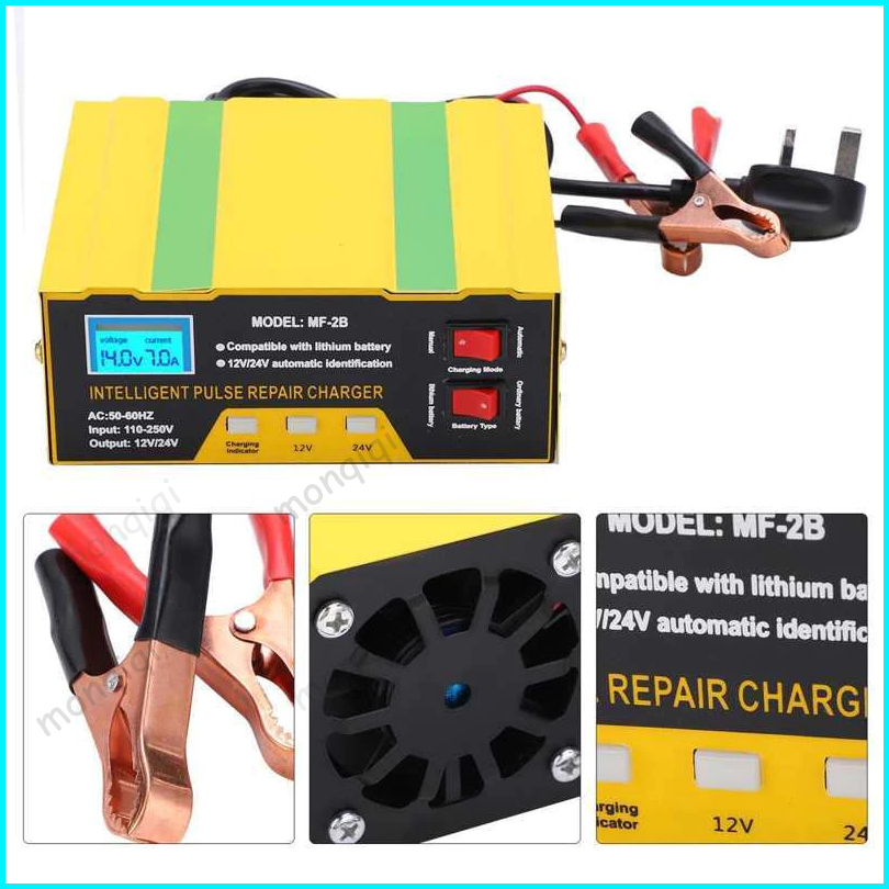 Monqiqi Charger Aki Mobil Motor Truck Kapal Elektrik Otomatis 12v 24v 6-105ah Mf-2b Vrtec Smart Battery Charger Mobil Mo