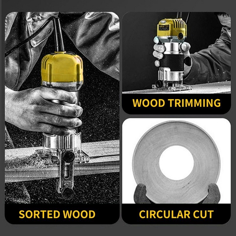 KEELAT 1200W Mesin Profil Power Tools Handheld Palm Wood Router With 15pcs Bits Electric Wood Trimmer Laminate