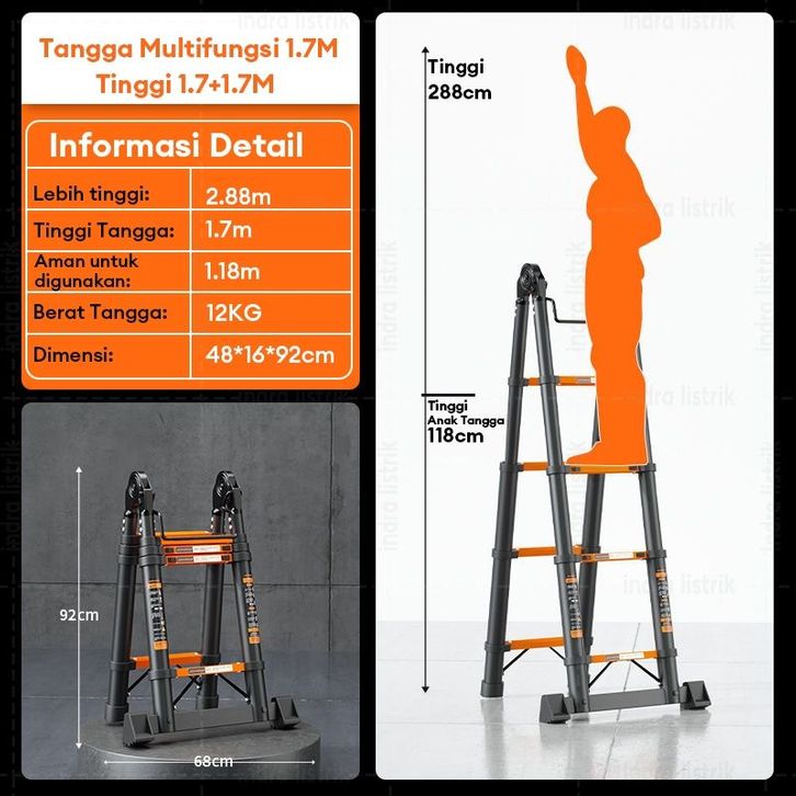 Reaim Tangga Teleskopik Multifungsi Aluminium Tangga Lipat Double Telescopic Ladder 6 Meter