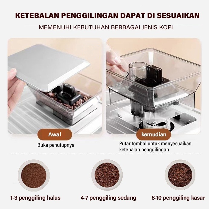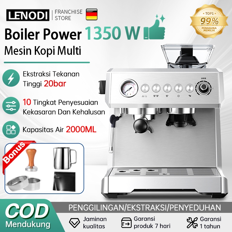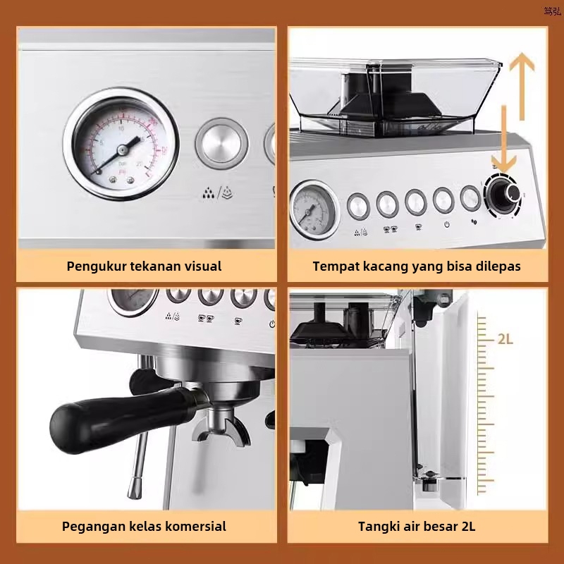 【Garansi 1 Tahun】Mesin Kopi Multi/1350wgrinder/Milk Frother 2 Boiler 20bar/tangki Air 2L/Penggilingan Kopi/Ekstraksi/Kon