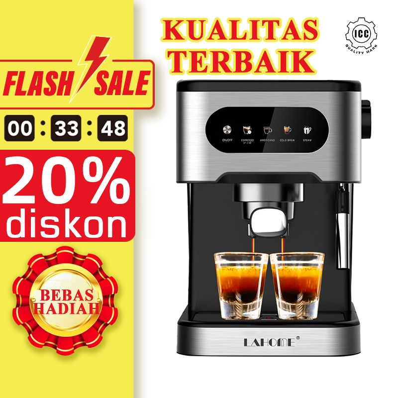 ✅ LAHOME 5 In 1 Mesin Pembuat Kopi Espresso Otomatis Dijual Panel Sentuh Milk Fother Auto Shut-Off shut-down 20 Bar Smar