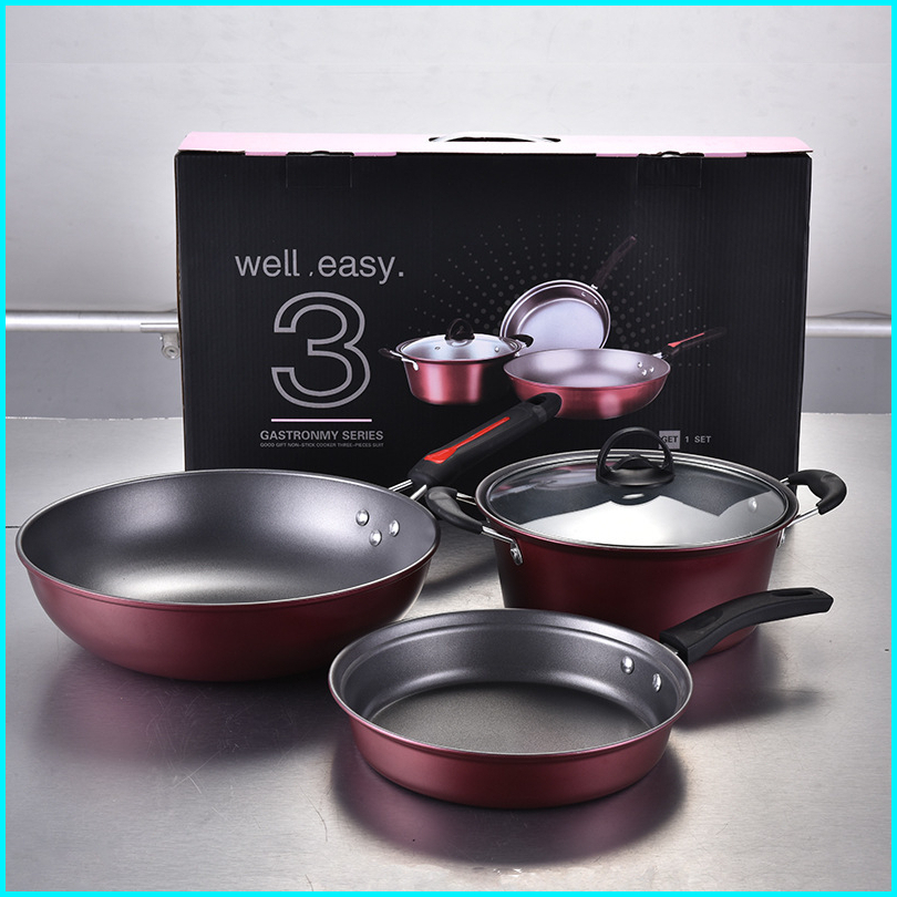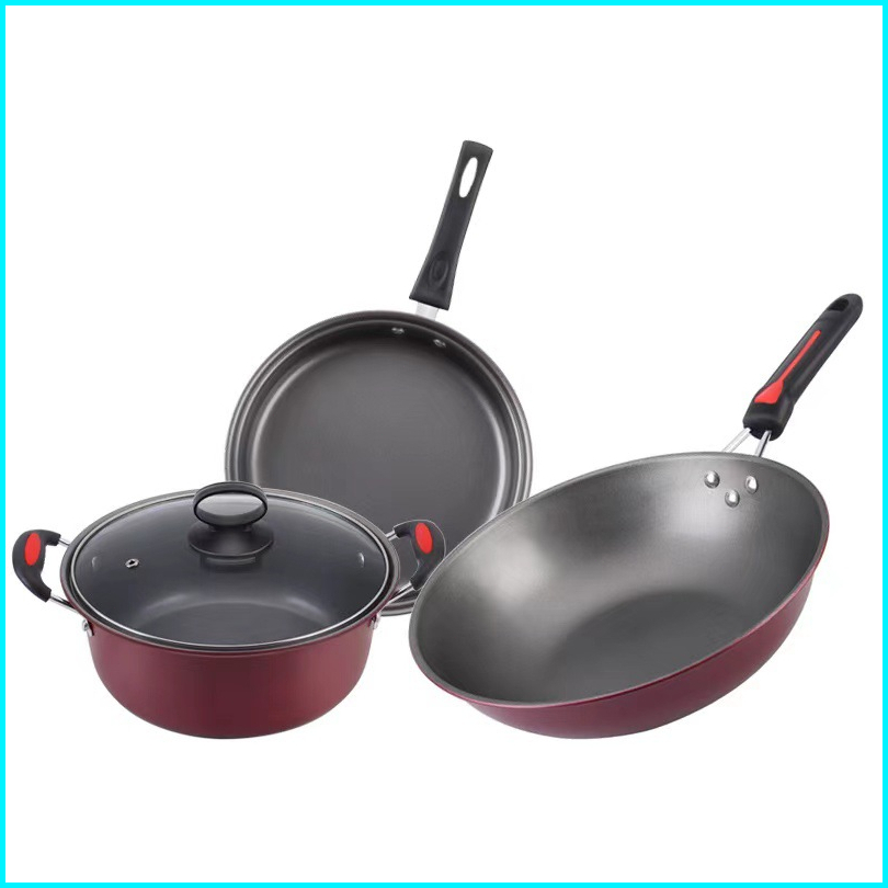 Qme Panci Wajan Teflon Set Panci Teflon Penggorengan Set 3 Pcs Pans Pots