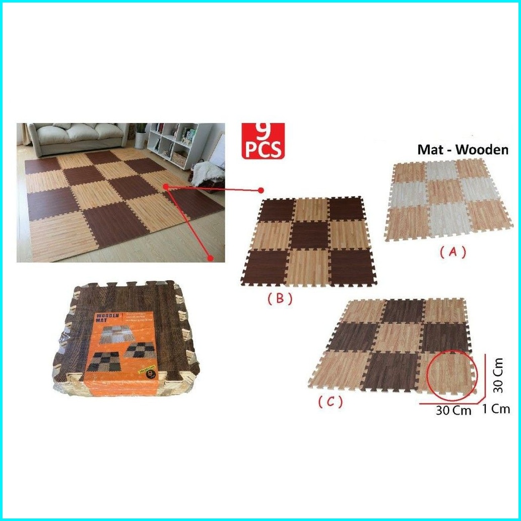 Karpet Puzzle Motif Kayu - Wooden Mat - Mat Isi 9 Pcs