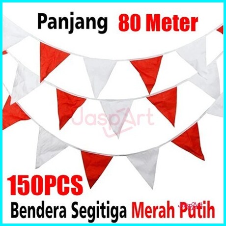150pcs 80 Meter Bendera Kain Segitiga Merah Putih - Umbul-umbul Bendera Segitiga Kain 65 Meter