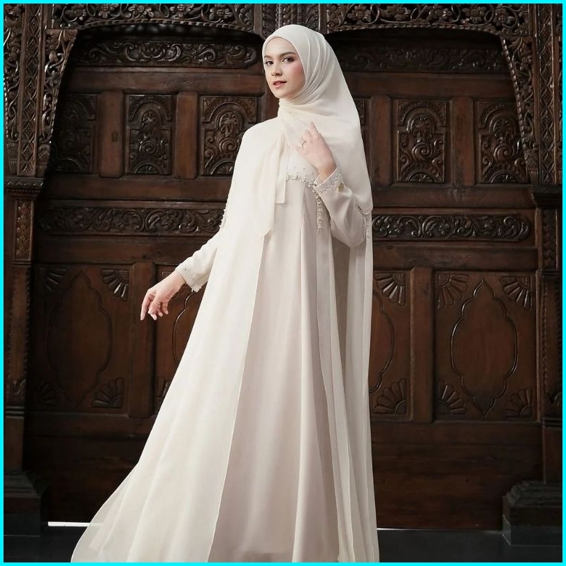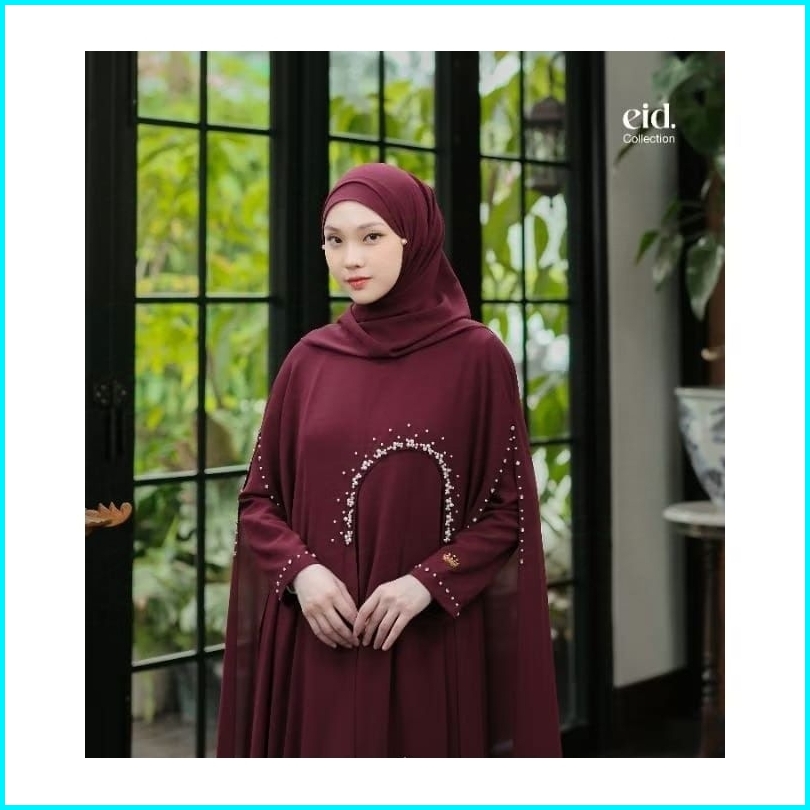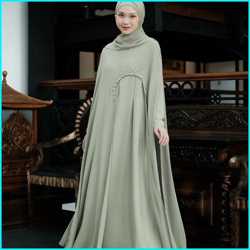 Luna Dress Abaya Terbaru Bahan Ceruty Babydoll Full Furing Aplikasi Payet Mutiara Outer Menyatu Wudhu Friendly