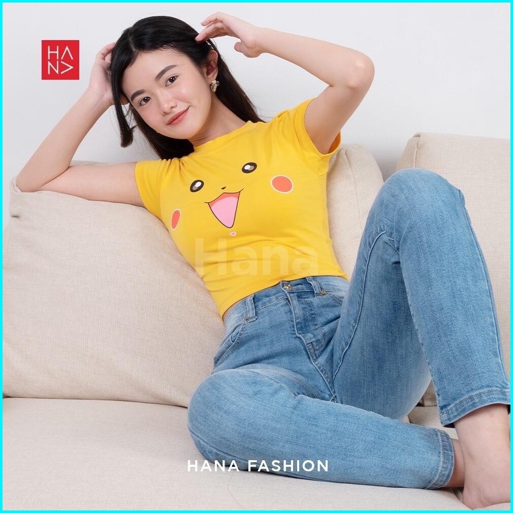 Kaoa Crop Top Pikacu Face Pokeemon Kaos Crop Oversize Original