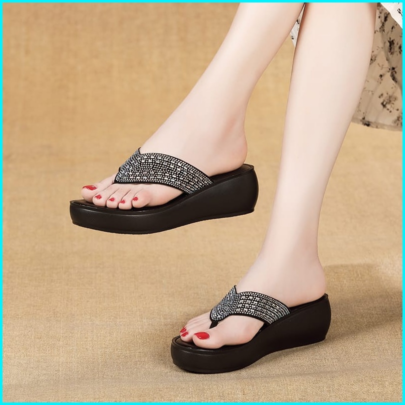 Sandal Wesges Wanita Terbaru Model Kekinian Model Permata Empuk