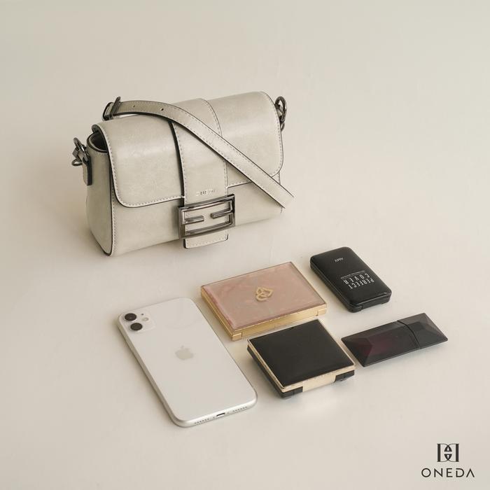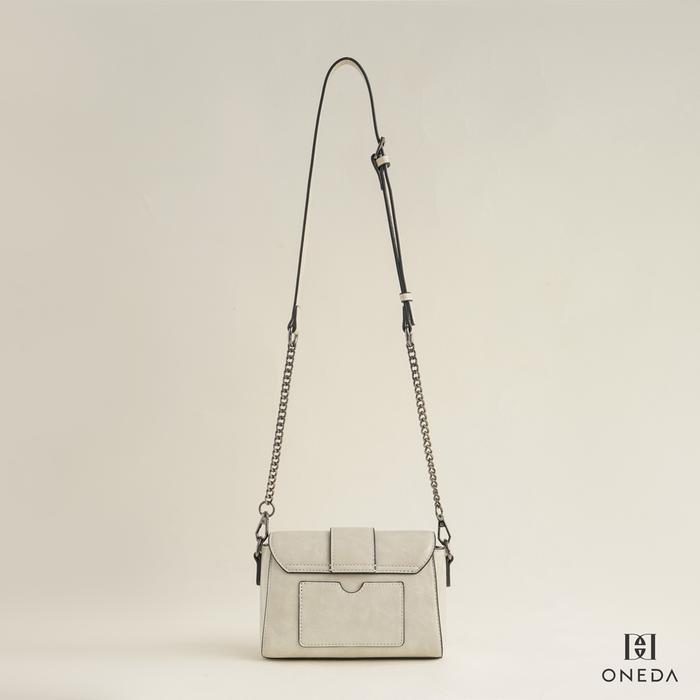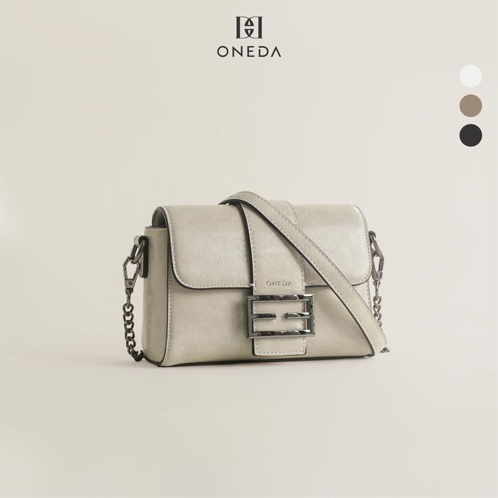 Oneda Gina Tas Semi Rantai Bahu Selempang Wanita #A8055 Polos Kulit Pu - Black