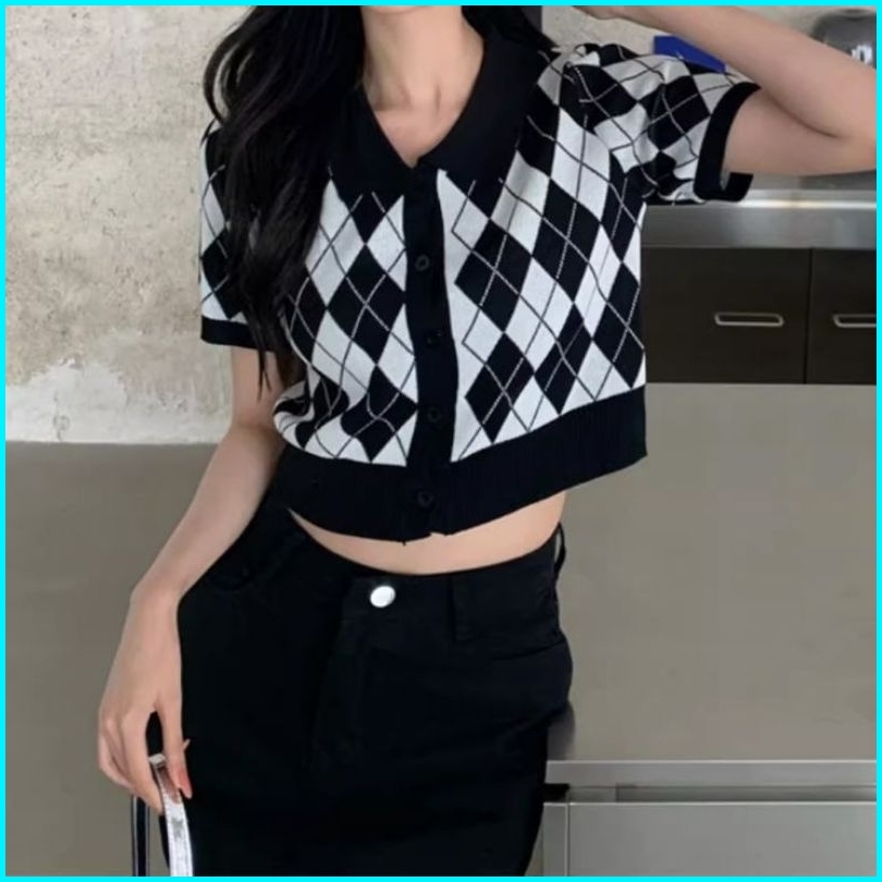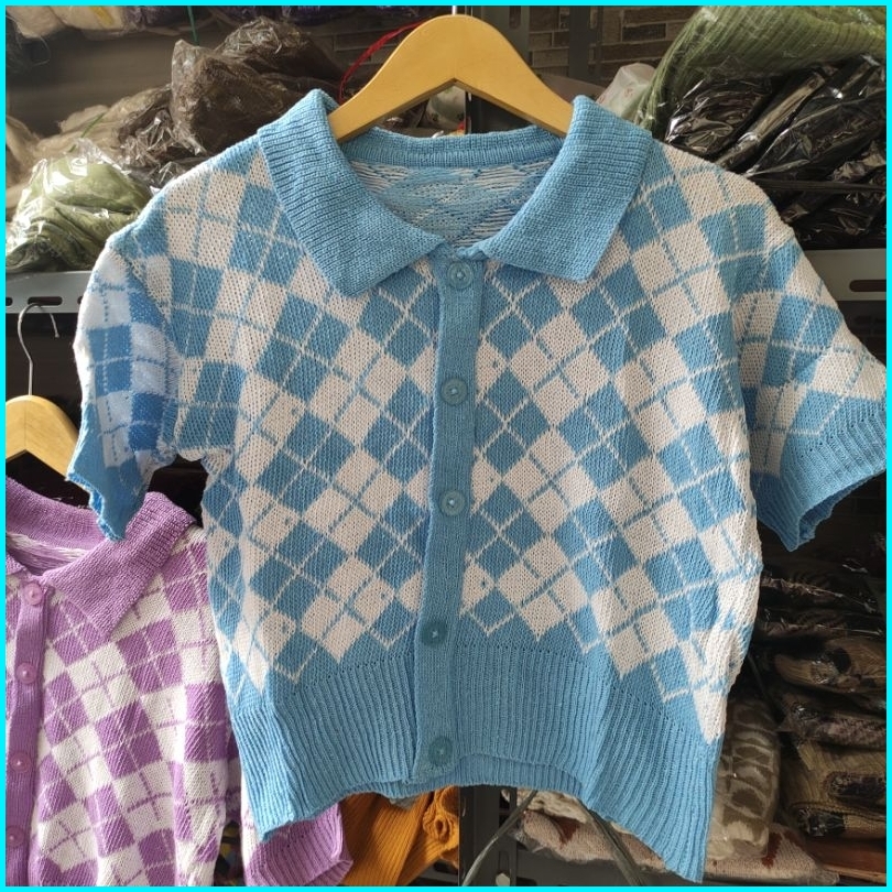 Atasan Rajut Ketupat Korea Crop Top Baju Rajut Crop