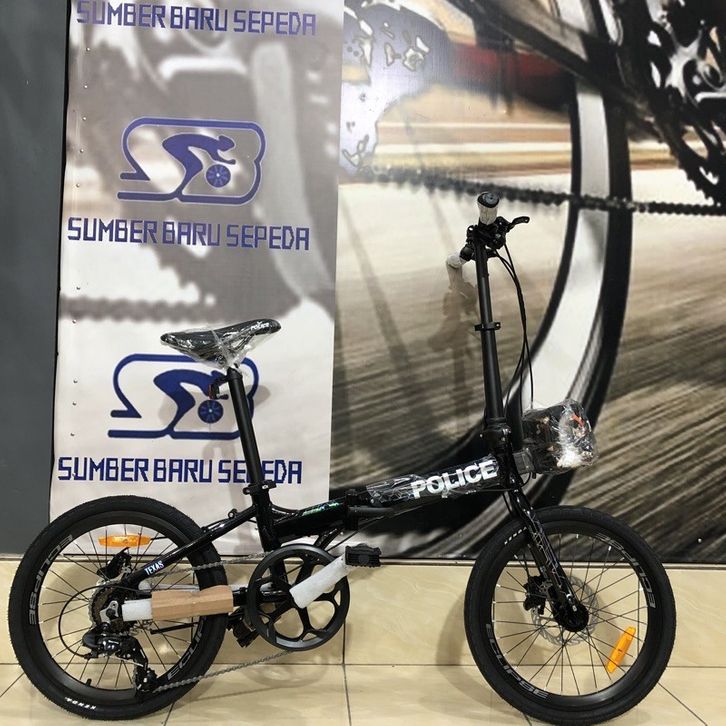 SEPEDA LIPAT POLICE TEXAS L 8 SPEED HYDRAULIC 20 INCH FREE TAS DEPAN SAMA HOLDER