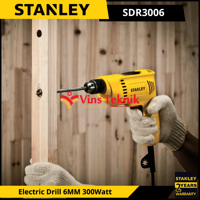 STANLEY SDR3006 Mesin Bor Listrik Besi Kayu Electric Drill 6mm 300Watt SDR 3006